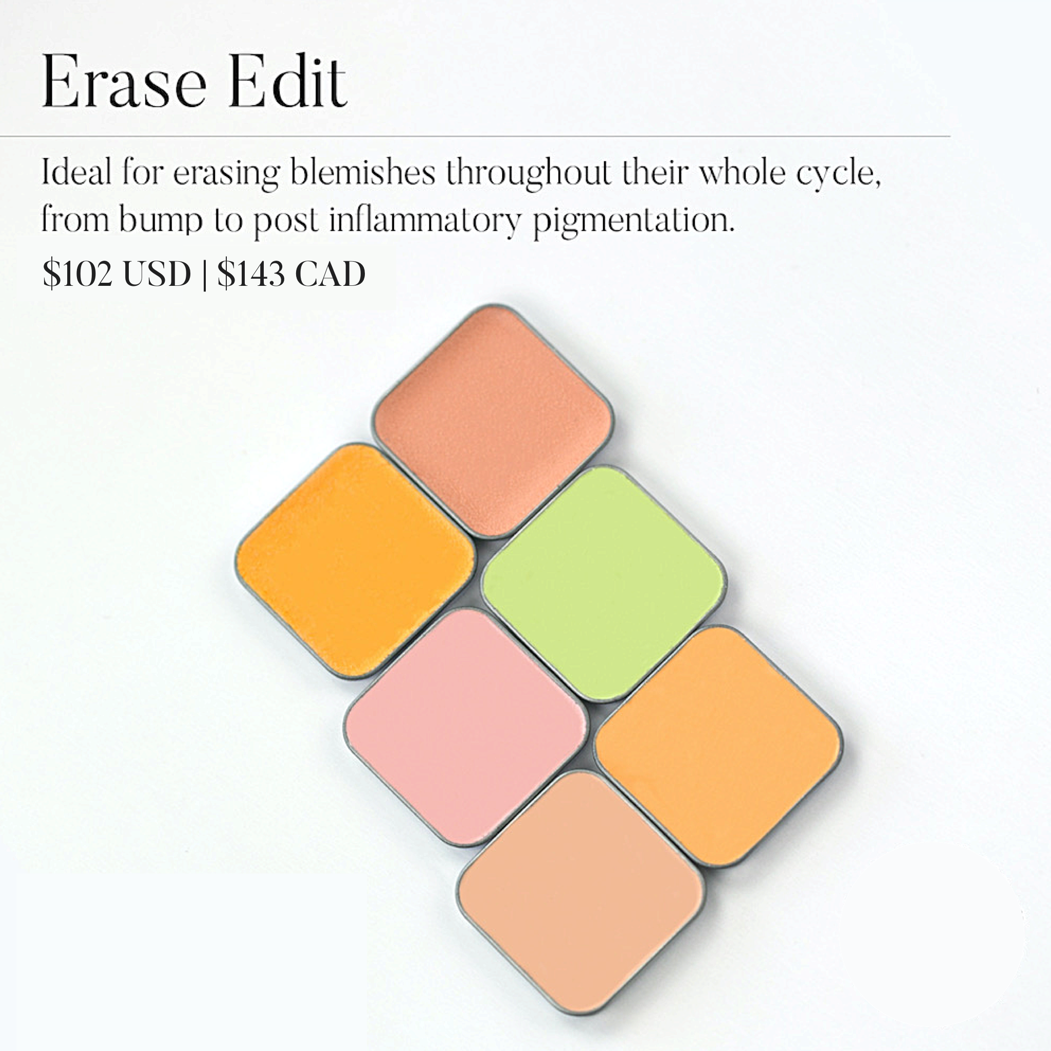 The Erase Edit is ideal for erasing blemishes and excess “redness” in the skin. By targeting each spot starting at the darkest point, you’ll keep your natural skin’s luminosity while eliminating those unwanted distractions.