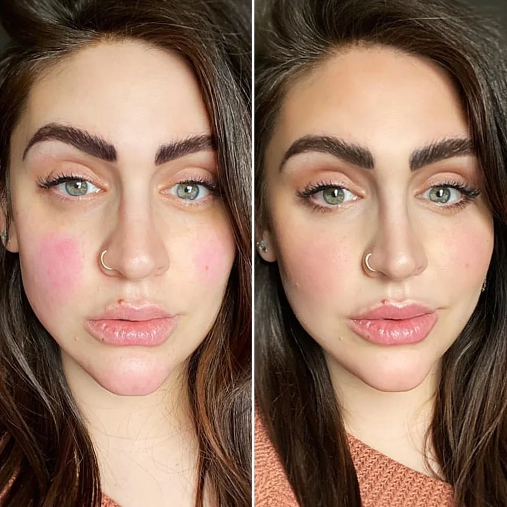 Rosacea is a long-term inflammatory skin condition that causes reddened skin and a rash, usually on the nose and cheeks. Not all redness is a named skin condition - sometimes it’s just natural rosiness, broken capillaries, blood supply peeking through the skin. Either way, if it’s something that bothers you, you should be able to use makeup to hide it if that’s your preference.