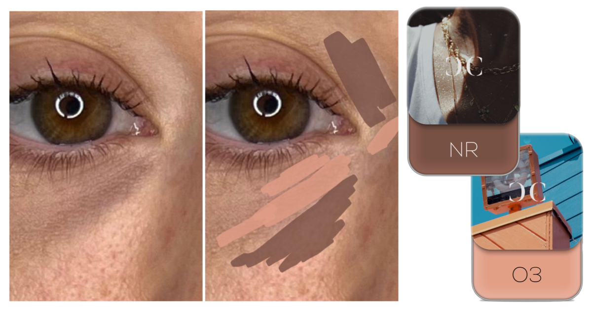 If an area looks more brown, muddy, sallow, if you have freckles or age spots creating an area of darkness - that is probably an excess green-blue so you should use pink-orange (RO1, OR1, RO3, OR3).