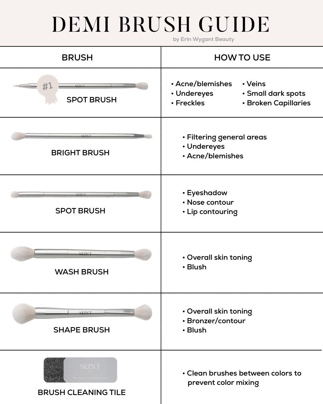 It may be helpful to have a Brush Cleansing Tile in your palette to clean excess makeup off your brush while switching in between colors so you donβt accidentally mix them in your tins. Or, you could just be lazy and unsanitary like me and wipe your brush off on the back of your hand, lol.
